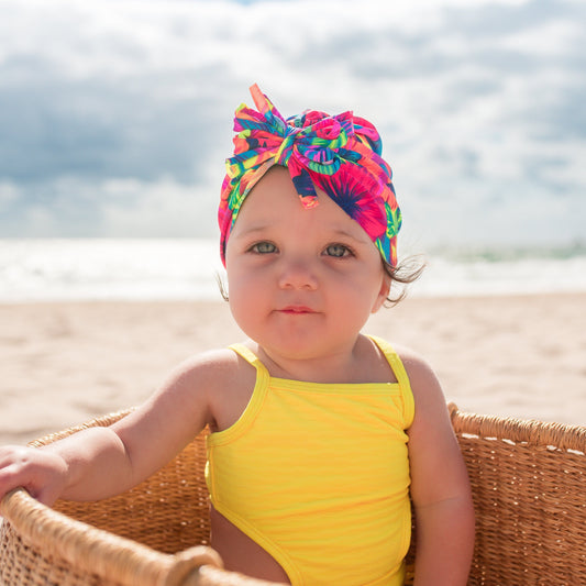 Sweet Peas Tropical Swim Turban Collection is a limited edition collection of waterproof UPF 50+ turbans in exclusive styles + prints.